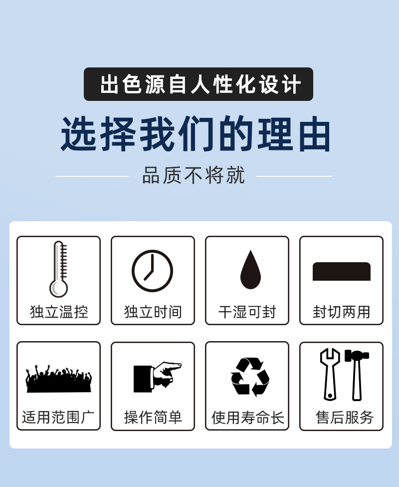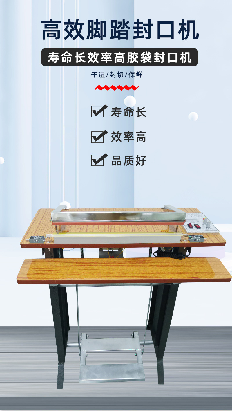 - 操作簡單方便:通過腳踏方式控制封口動作,操作直觀、容易掌握。不需要復(fù)雜的電氣控制知識,操作人員可以快速上手。這種簡單的操作方式尤其適合小型企業(yè)、商鋪或家庭作坊等對包裝設(shè)備操作要求不高的場所。