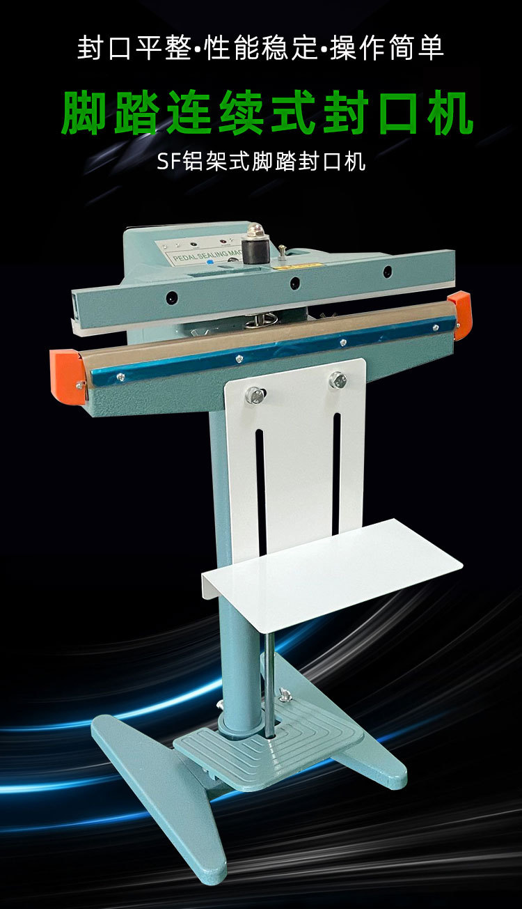 • 腳踏封口機:通過腳踏板控制封口動作,操作人員可以用腳踩下踏板來啟動封口流程,雙手則可專注于放置和調整待封口物品,能更靈活地操作,尤其適用于需要頻繁封口且對雙手操作要求較高的場景。