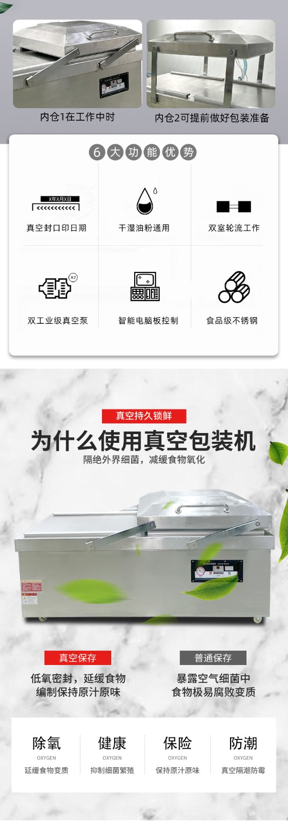 - 真空度:高端品牌的平板雙室真空機真空度可達 0.01kPa 甚至更高,能更好地排除包裝內(nèi)空氣,延長產(chǎn)品保質(zhì)期。而一些普通品牌的真空度可能只能達到 0.05kPa 左右,保鮮效果相對較差。