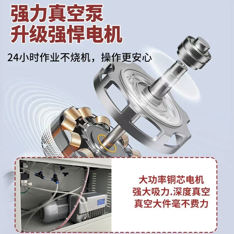 • 內抽式:有密封的真空室,通常由不銹鋼制成,真空室大小決定了可包裝產品的尺寸范圍。配備真空泵、真空表、熱封裝置等,結構相對復雜。