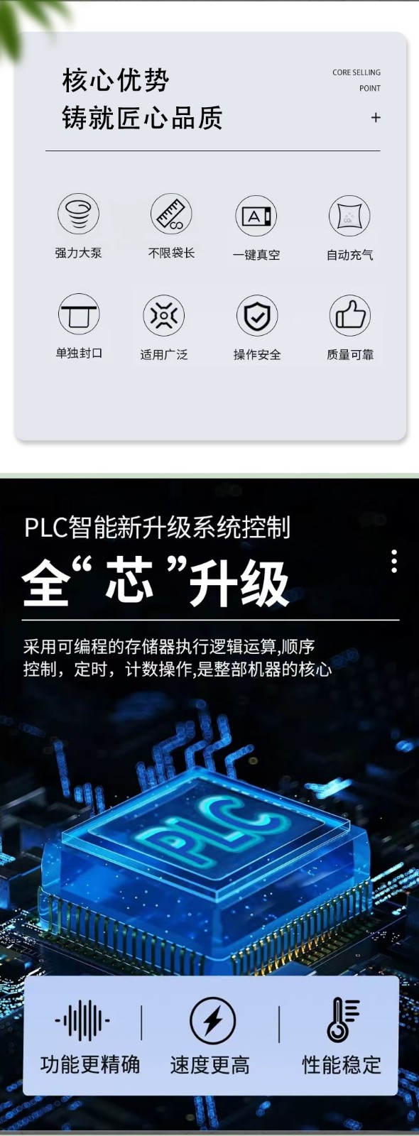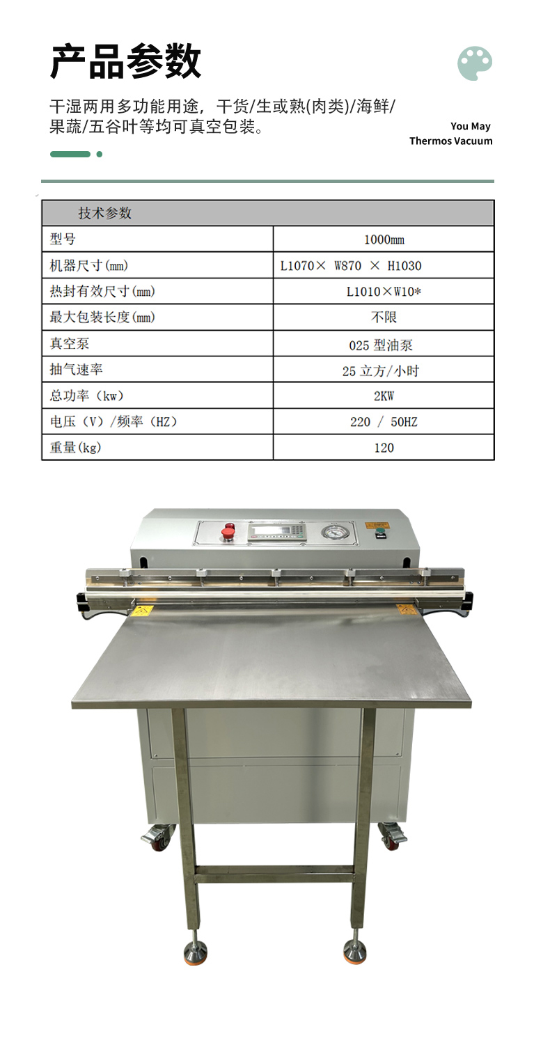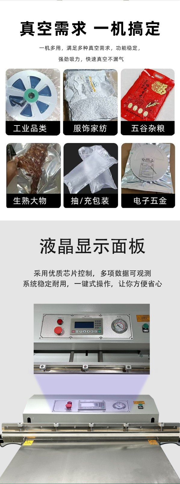 • 內抽式:真空室密封好,可達到較高真空度,能滿足對真空環境要求苛刻的產品包裝需求,如一些易氧化、需長期保存的食品和藥品。