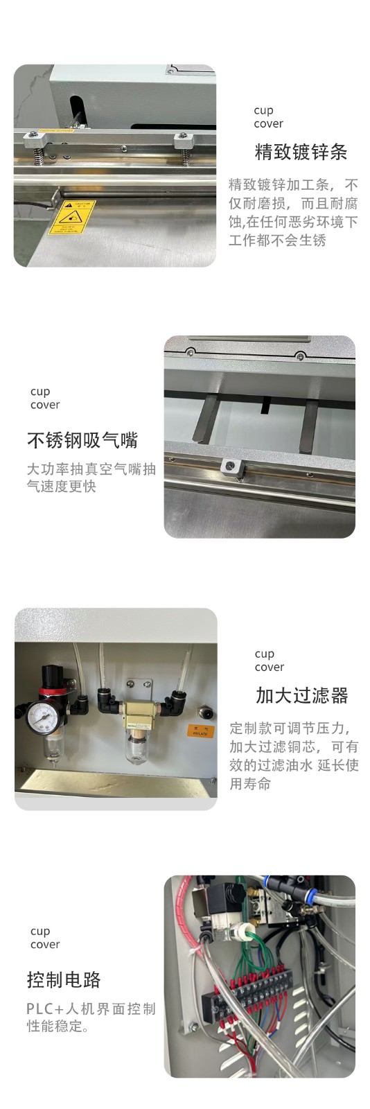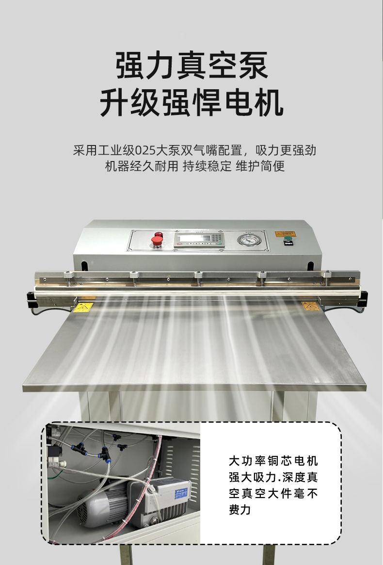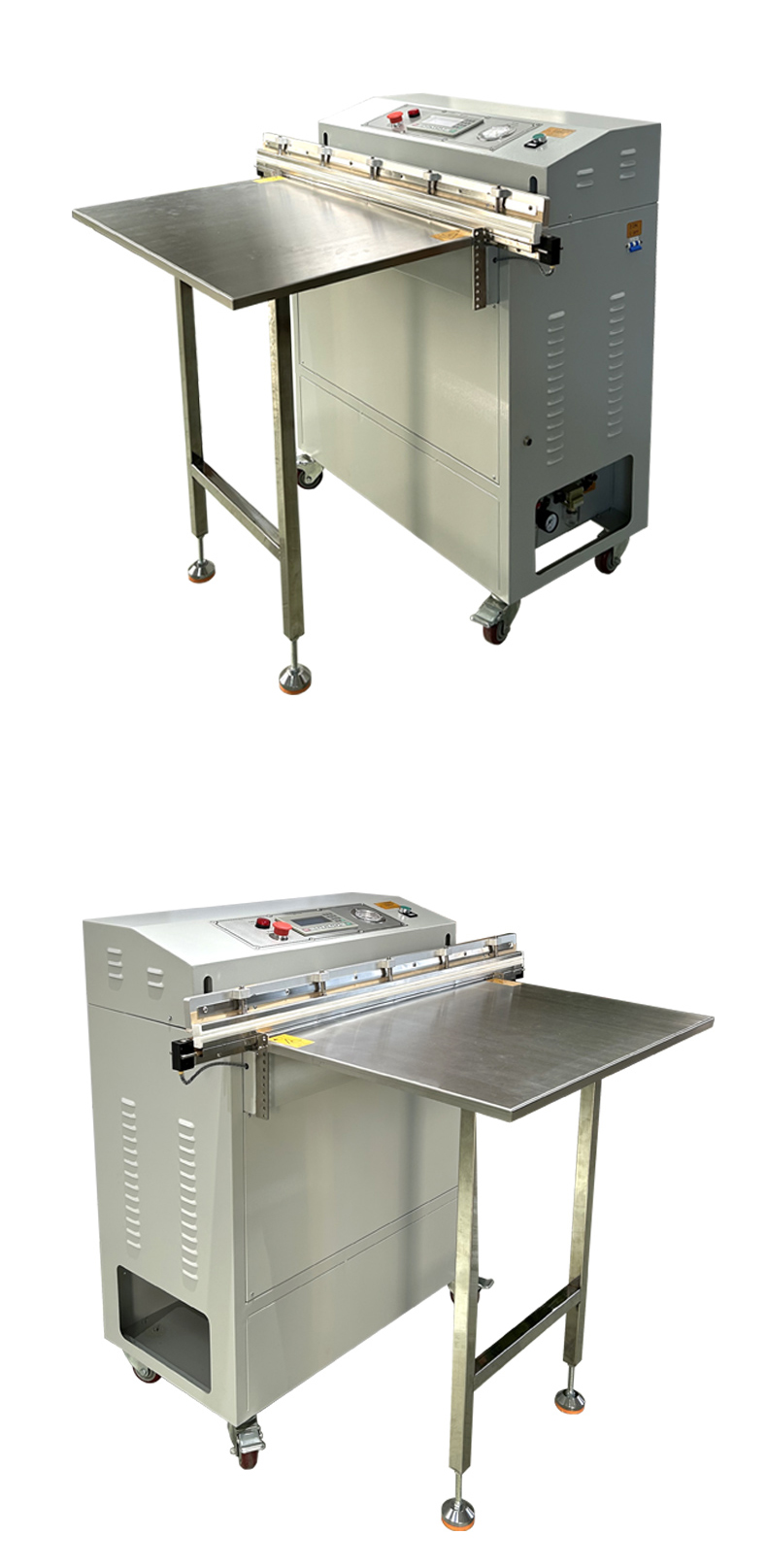 • 外抽式:一般采用立式結構,無密封真空室,由工作臺、抽氣裝置、封口裝置和控制系統等組成,結構較為簡單,占地面積小。