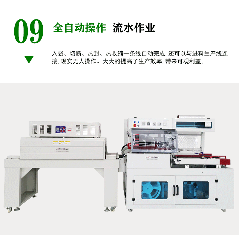 全自動封切熱收縮機適用于手機、平板電腦、電子配件等電子產品的包裝,起到防塵、防潮、防靜電的作用,保護電子產品在運輸和銷售過程中不受損