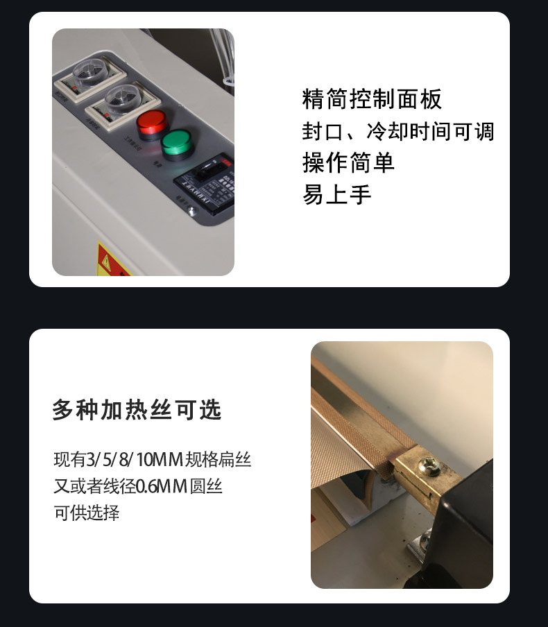 - 臺式封口機:有較大的工作平臺,適用于中小規模的生產,如小型食品加工廠。