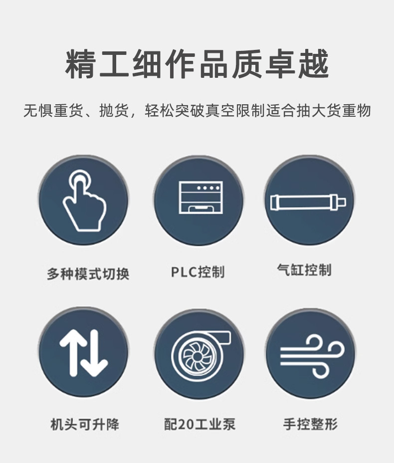 2. 強大的真空抽氣能力,快速達到理想的真空度,提高包裝效率。