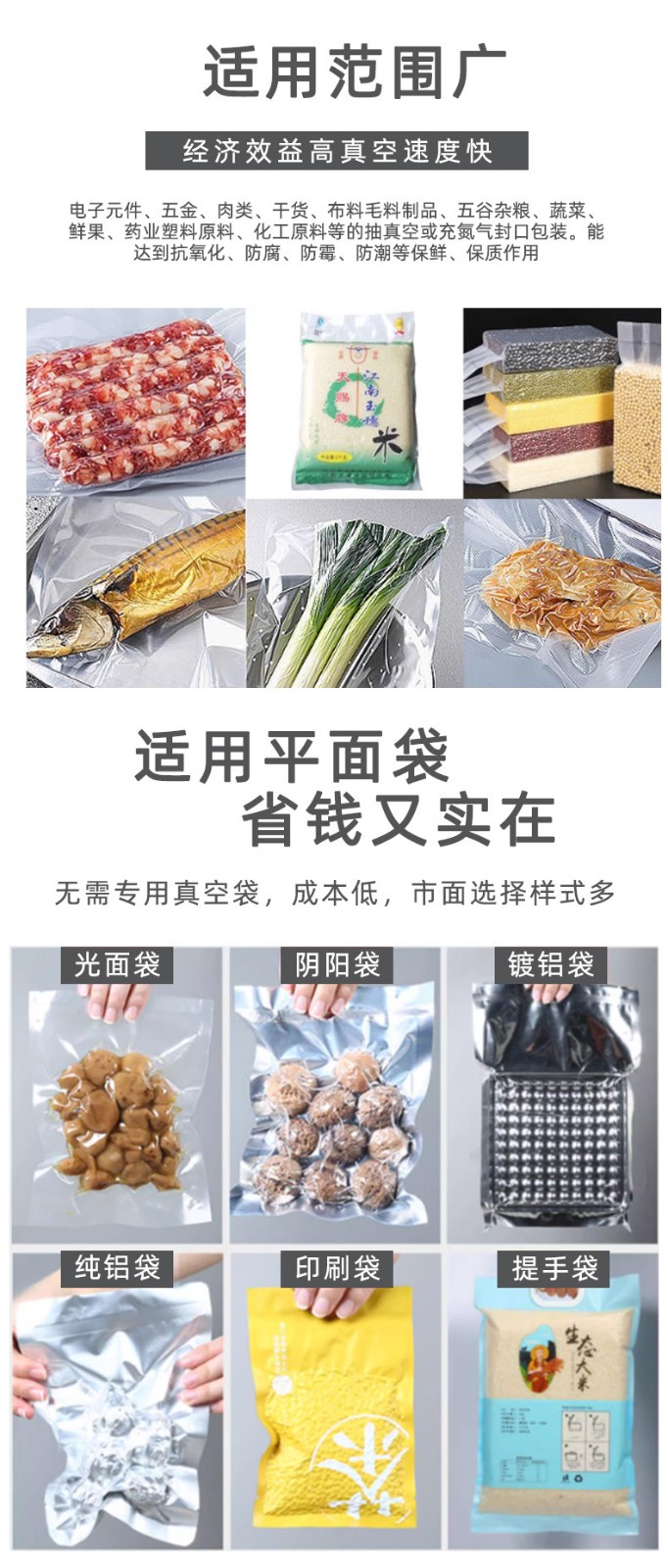 對于海產品領域,如多層放置的魚干、蝦干等,可升降式設計能夠根據產品的堆積高度進行精準適配,確保真空包裝的效果。