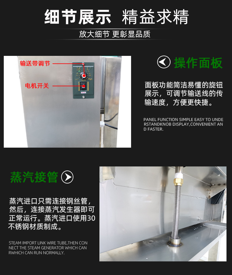它利用蒸汽的高溫特性,對(duì)包裝材料進(jìn)行加熱,使其收縮并緊密貼合在產(chǎn)品表面,實(shí)現(xiàn)良好的包裝效果。