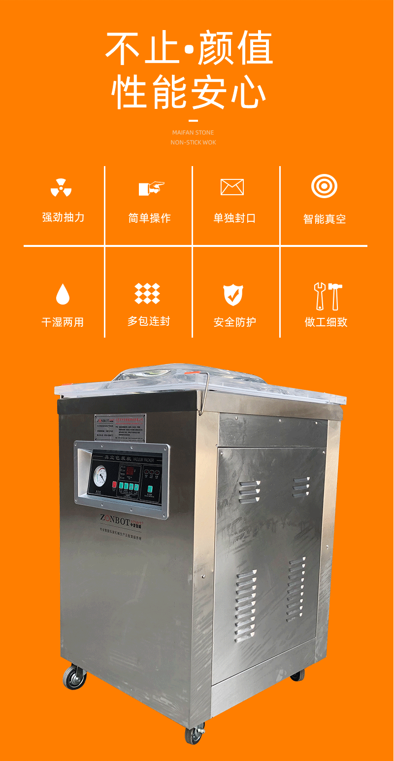 它的獨(dú)特之處在于能夠同時(shí)應(yīng)對(duì)干性和濕性物品的真空包裝需求,打破了傳統(tǒng)真空包裝機(jī)只能處理單一性質(zhì)物品的限制。