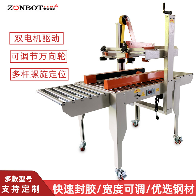3. 多功能性:可以適應(yīng)不同尺寸、形狀的紙箱,通過調(diào)整設(shè)備參數(shù)可以實(shí)現(xiàn)多種封箱方式,如一字封、十字封等。