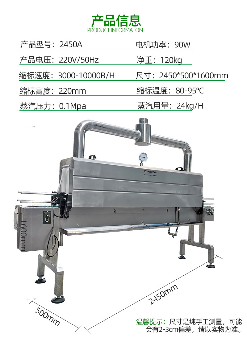 - 高效節能:蒸汽作為熱源,熱傳導效率高,能夠快速達到收縮溫度,節省能源消耗。