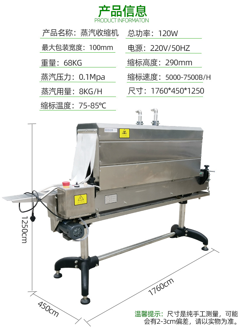這類機器的操作相對簡單,容易上手。一般具有簡潔明了的控制面板,操作人員可以輕松地設置蒸汽溫度、收縮時間和傳送帶速度等基本參數。通常不需要復雜的培訓就能掌握其操作方法,降低了人力成本和培訓時間。