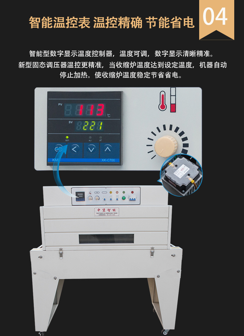 - 負(fù)責(zé)控制整個熱收縮機的運行,包括啟動、停止、調(diào)節(jié)輸送帶速度、設(shè)定加熱溫度、控制通風(fēng)等操作。操作人員可以通過控制面板方便地對各項參數(shù)進行設(shè)置和調(diào)整,同時,一些先進的控制系統(tǒng)還具備故障診斷和報警功能。