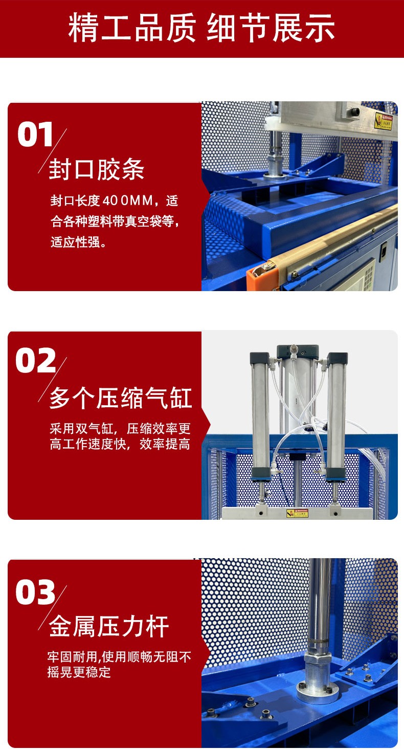 壓縮封口包裝機(jī)是一種用于對產(chǎn)品進(jìn)行壓縮和封口包裝的設(shè)備,以下為你詳細(xì)介紹: 工作原理 壓縮原理:依靠機(jī)械傳動、氣動或液壓系統(tǒng)產(chǎn)生壓力。當(dāng)物品被放置在包裝位置后,機(jī)器的壓縮裝置會對其施加外力,擠壓包裝袋內(nèi)的空氣,使物品被壓縮,達(dá)到減小體積、便于包裝和運(yùn)輸?shù)哪康摹?封口原理:利用加熱元件對包裝材料的封口部位進(jìn)行加熱,使薄膜受熱熔化,然后通過冷卻和壓力作用,將熔化的薄膜壓合在一起,形成密封的封口,防止空氣、水分等進(jìn)入包裝內(nèi)部,保護(hù)產(chǎn)品。 結(jié)構(gòu)組成 壓縮機(jī)構(gòu):包括壓板、氣缸、絲桿等部件,負(fù)責(zé)對物品進(jìn)行壓縮。壓板通