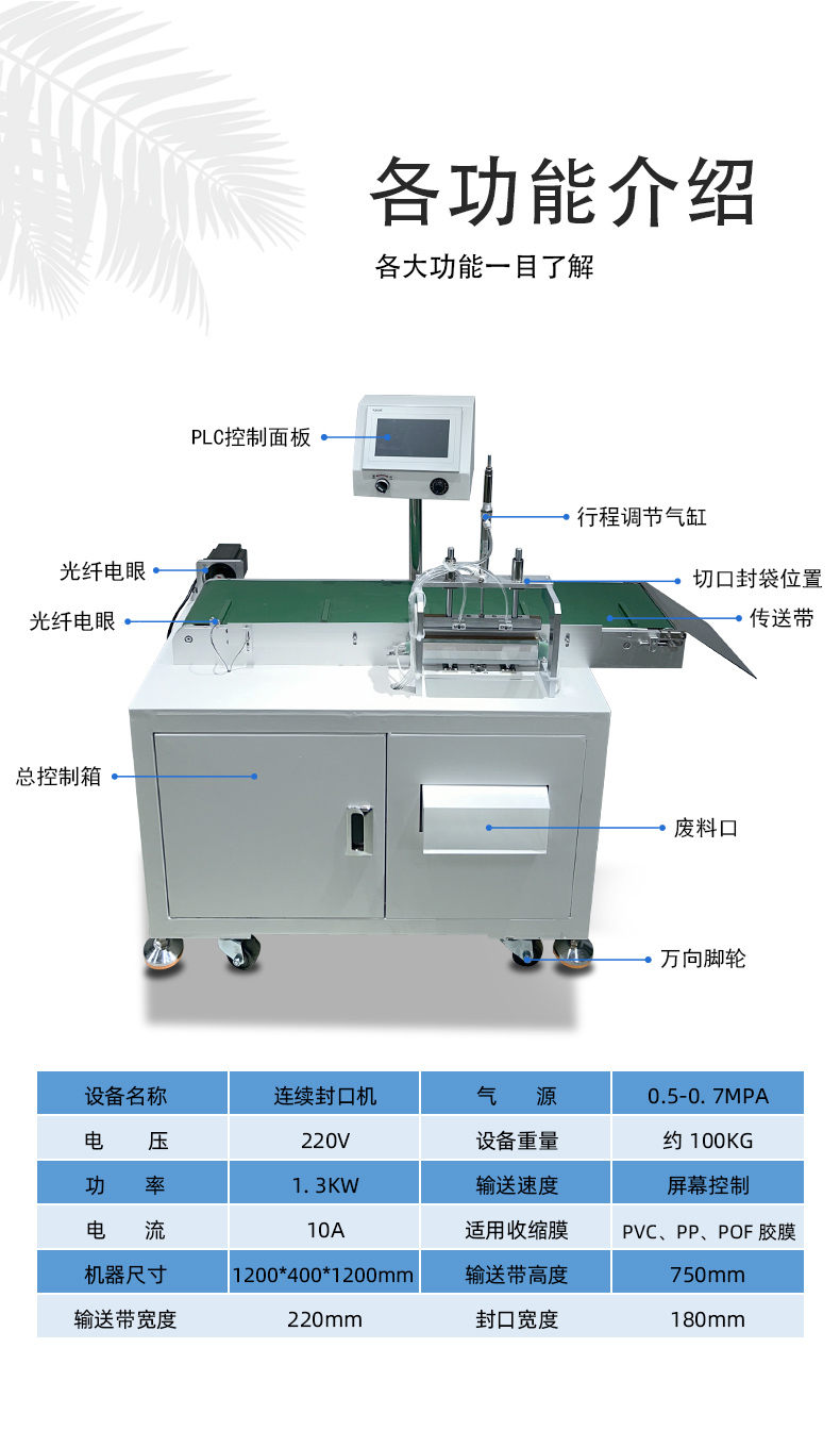 連續式氣動封切機是一種常用于包裝行業的設備,它能夠對產品進行連續的封切操作,以下是對其的詳細介紹: