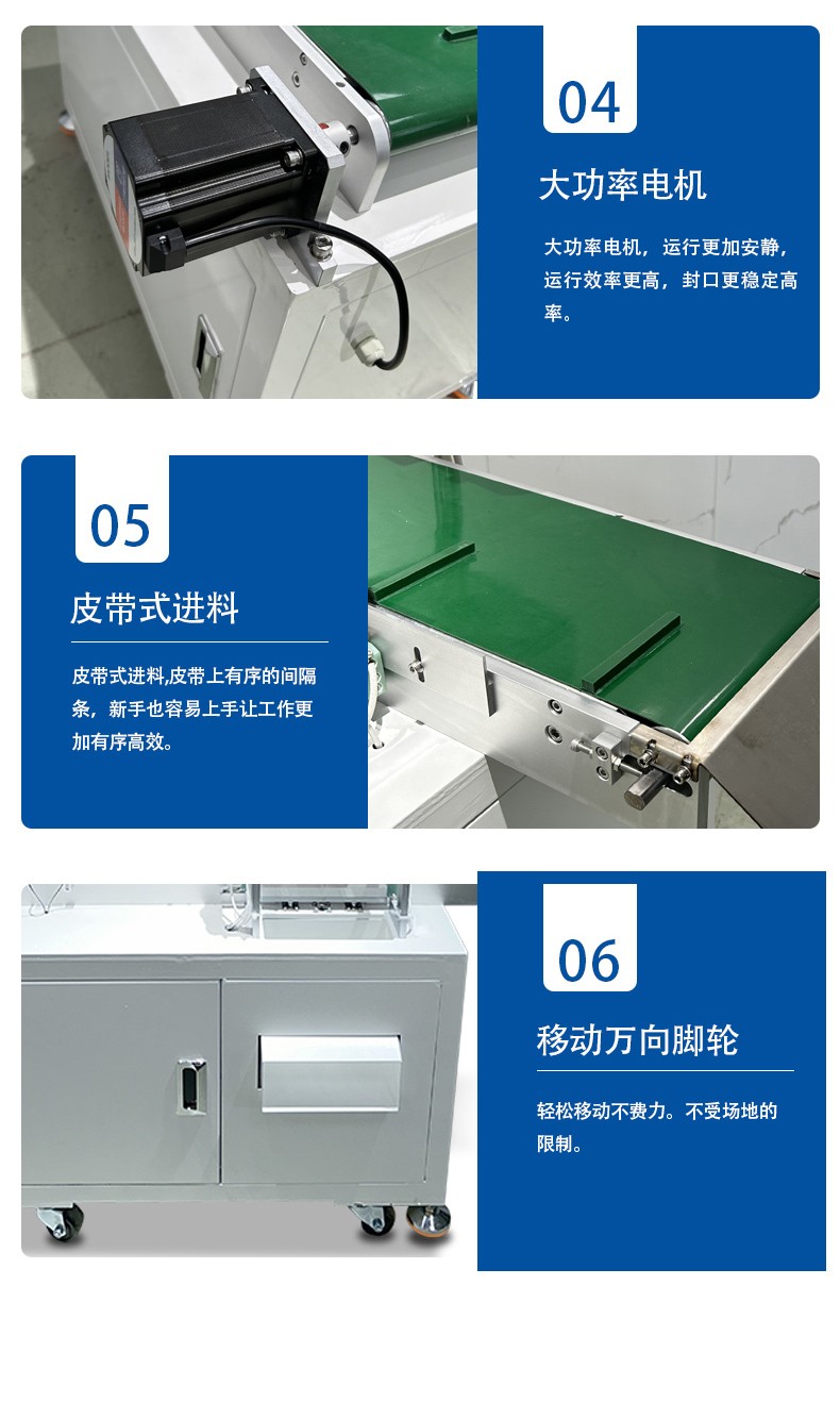 - 物料輸送:待包裝的物品放置在輸送帶上,輸送帶在驅動電機的帶動下勻速運轉,將物品連續不斷地輸送至封切位置。
