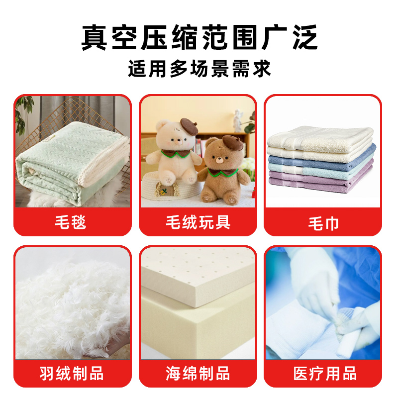 • 家居用品:用于羽絨被、棉被、枕頭、毛絨玩具等蓬松物品的收納包裝,可大大節省存儲空間,使家居環境更加整潔有序。