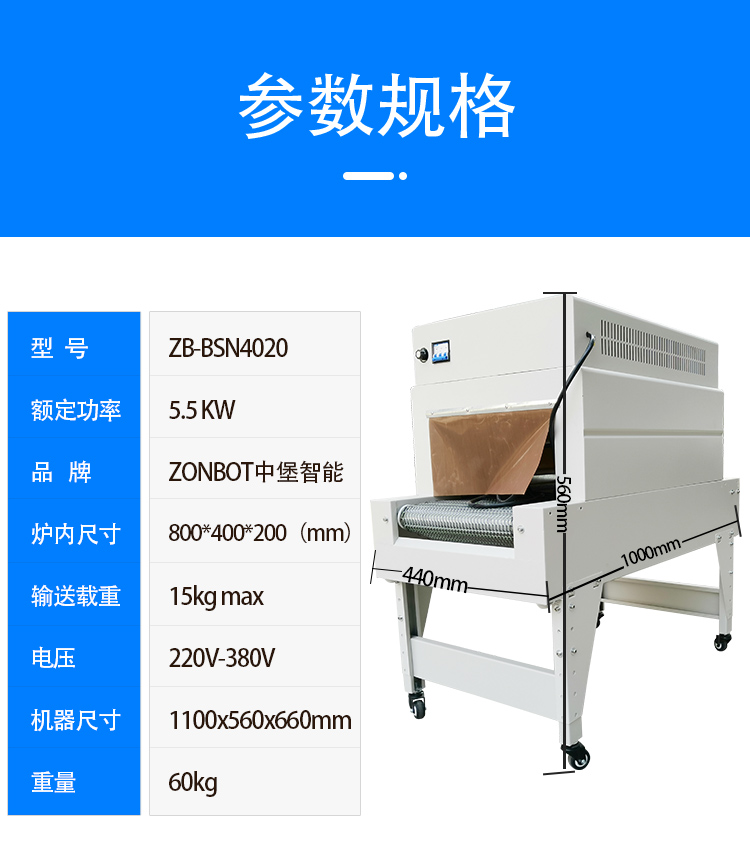 4020W加長款高配熱收縮包裝機高臺鏈式熱縮膜收縮機
