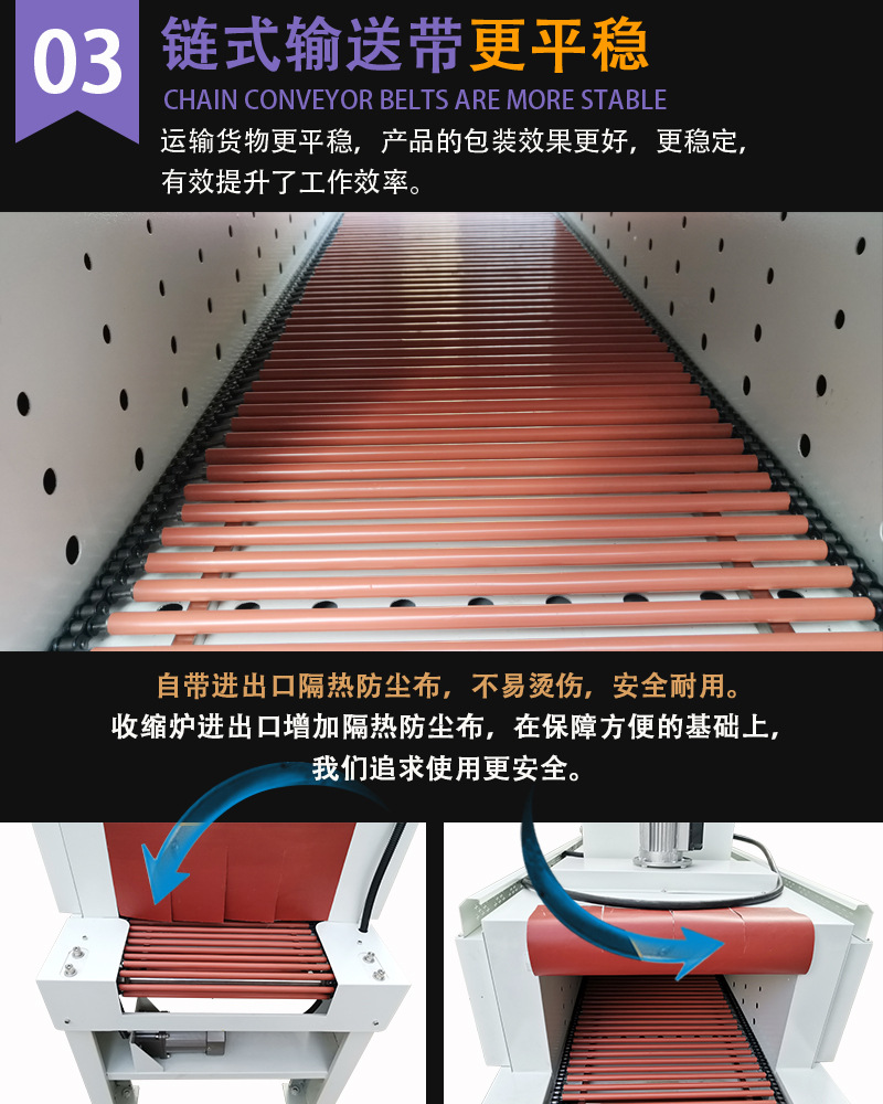 首先,我們需要將物品放入收縮機包裝盒內,然后調整好加熱時間和溫度。機器會自動跟蹤物品的高度,進行自動加熱、收縮包裝。整個過程只需簡單操作,即可實現高效、高質的包裝效果。熱收縮機還具備自動計數、缺料報警等功能,使得生產過程更加智能化、便捷。