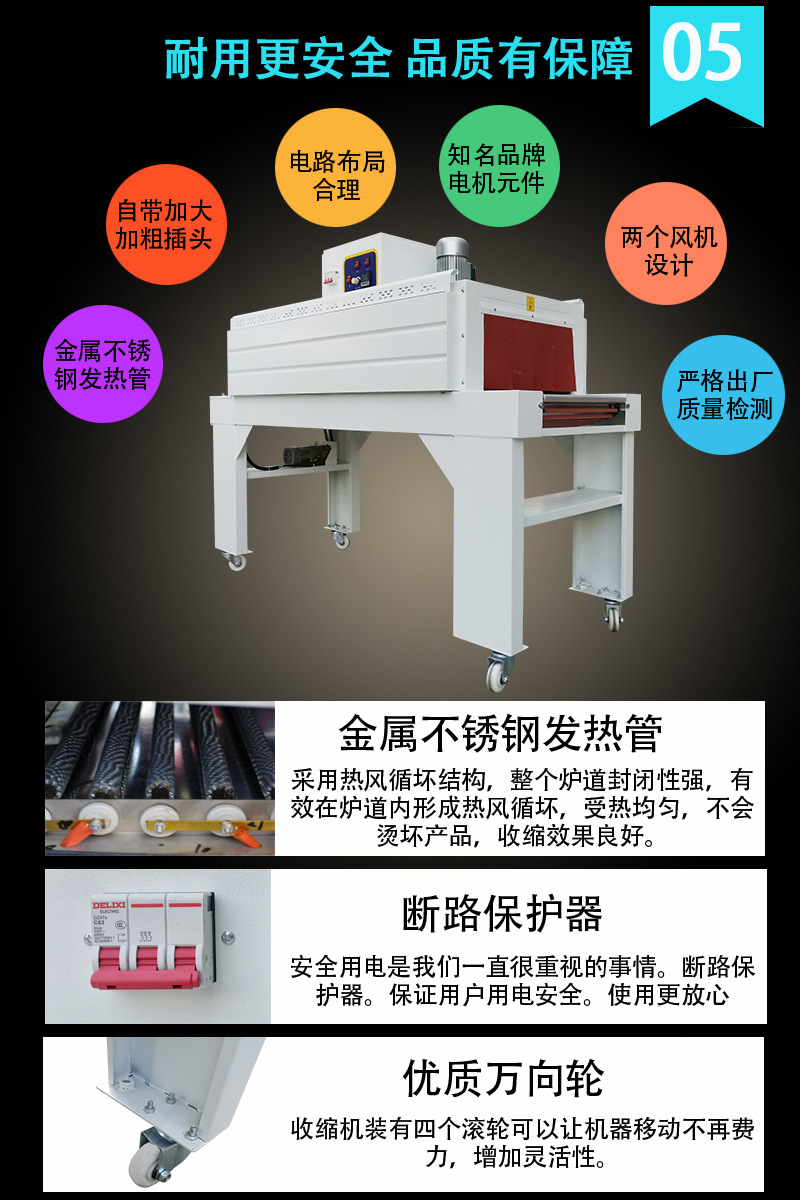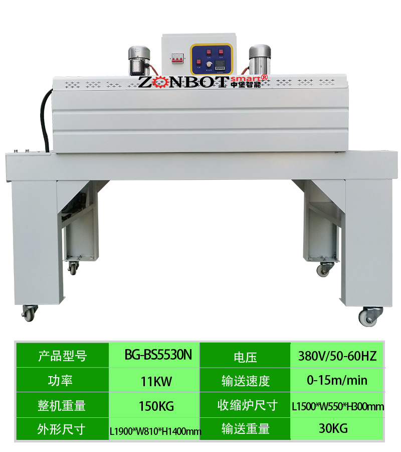 收縮機,是一種利用高溫熱源將物品進行自動收縮包裝的設備。廣泛的應用于食品、醫藥、化妝品、電子產品等多個行業。使得包裝物品更加美觀、密封、防潮、防腐。