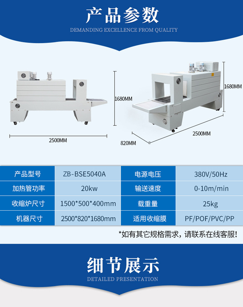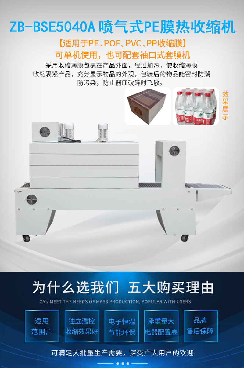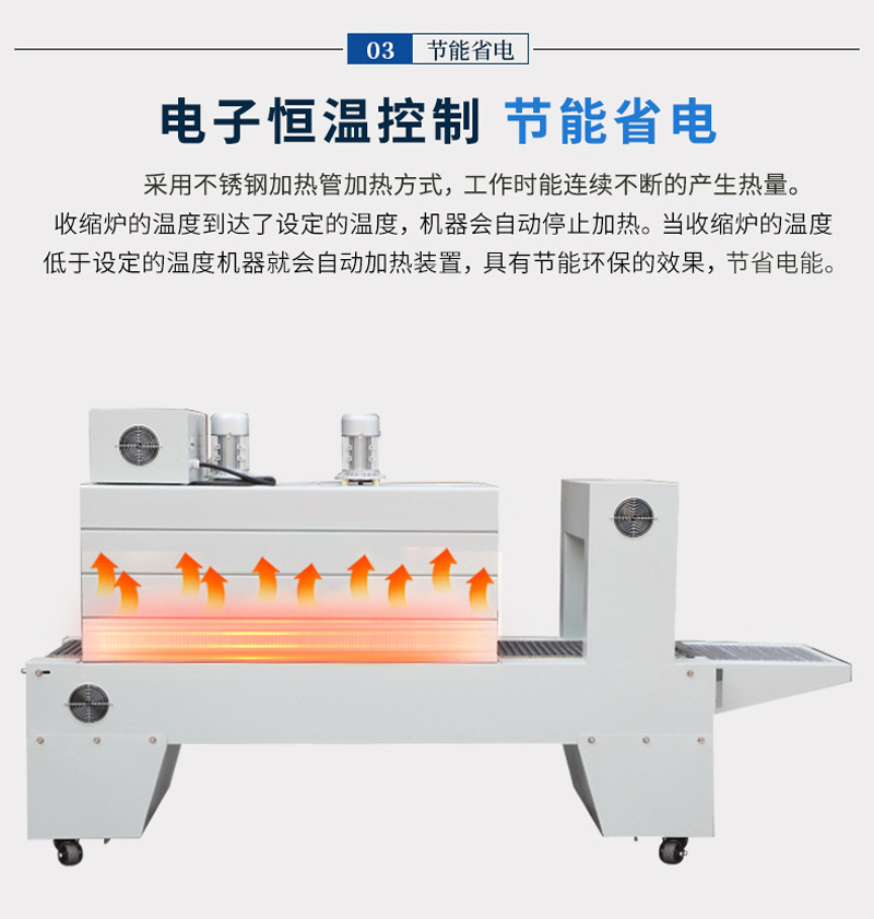 使用熱收縮機非常簡單,只需要將包裝袋放入設備中,調節(jié)好溫度和時間,即可完成收縮過程。此外,熱收縮機還配備了多種收縮溫度和時間模式,滿足不同食物的包裝需求。