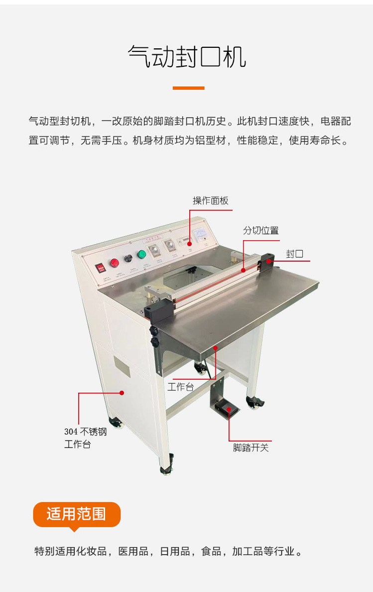 封口機適用的行業范圍比較廣,且具有使用方便、提高效率、提高產品質量、增加競爭力等諸多優點。因此,在面對高效、精準、安全的生產需求的今天,封口機已成為許多企業的不可或缺的必需品。