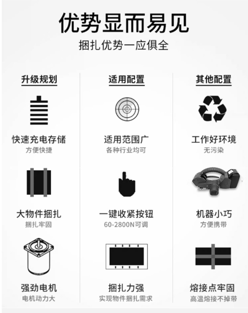 手搖式免扣打包機是一種便捷的包裝設備,主要用于物品的捆扎和打包。它采用免扣設計,無需使用額外的扣件,即可實現(xiàn)包裝帶的緊密連接,從而提高打包效率并降包裝成本