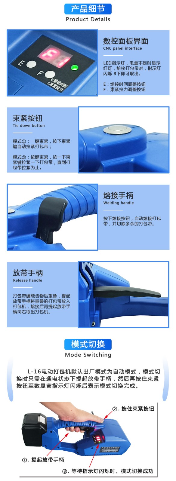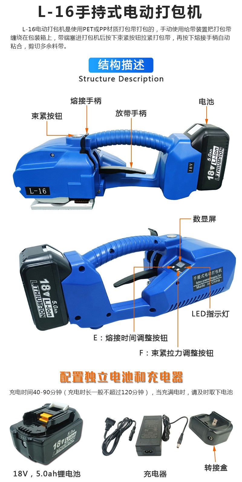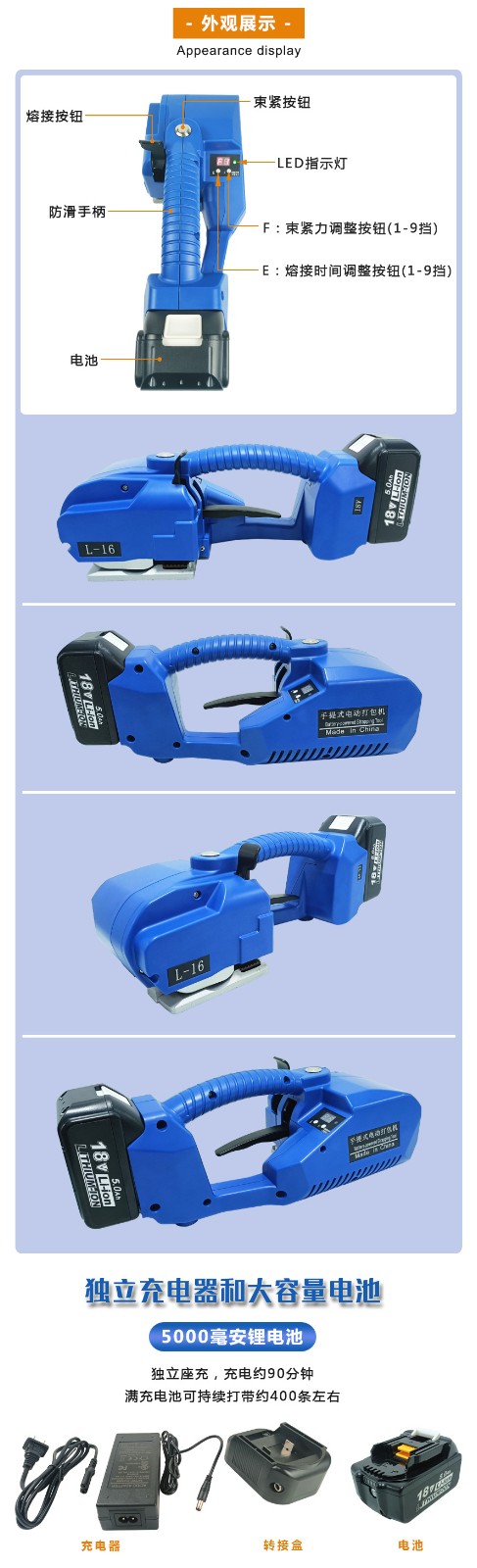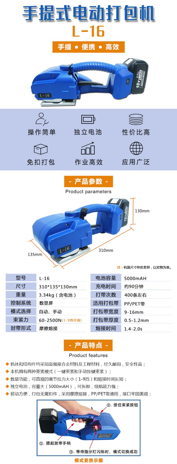 L-16手提式電動打包機PET帶PP帶全自動免扣熱熔捆扎打包機