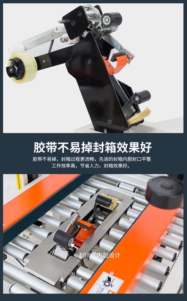 封箱機主要適用于紙箱的封箱包裝,既可單機作業,也可與流水線配套使用,它可單箱作業,也可與紙箱成型開箱機、裝箱機、貼標機、捆包機、棧板堆疊機、輸送機等設備配套成包裝流水線使用,為包裝流水線作業必須的設備