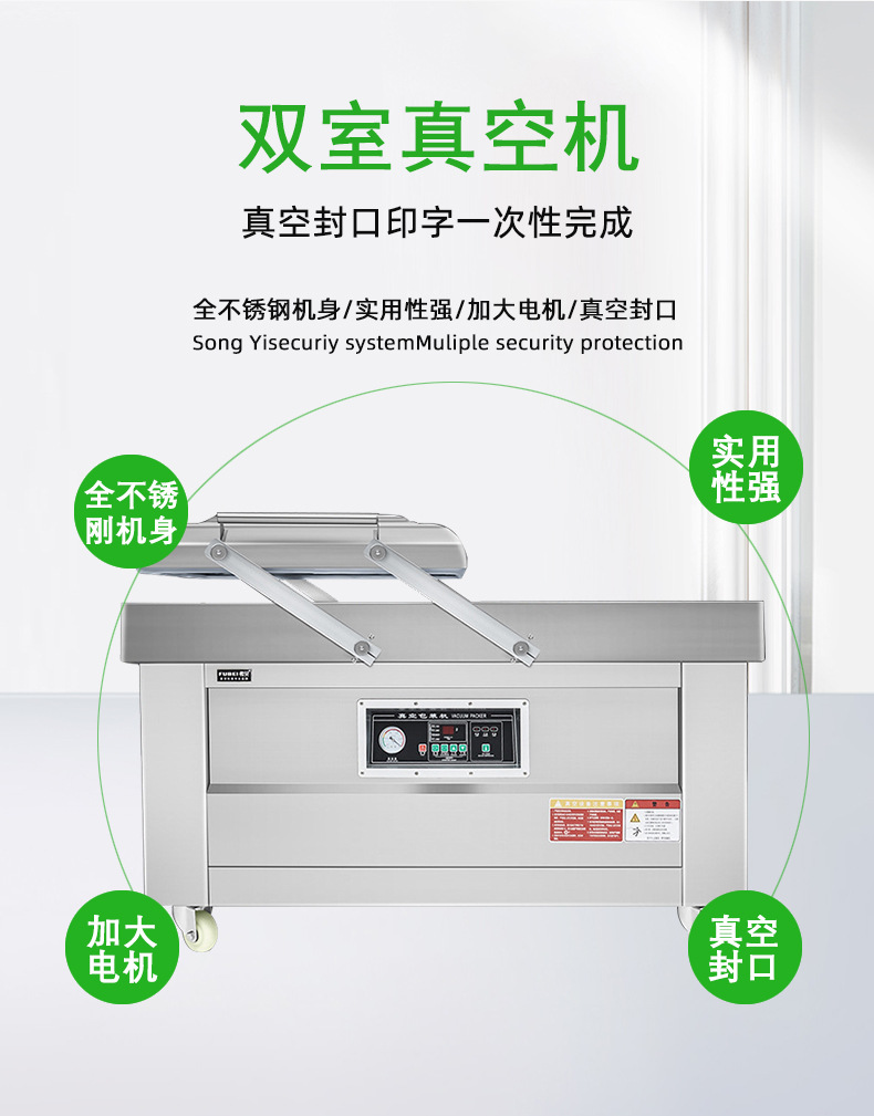 雙室食品真空包裝機適用于食品行業(yè)、肉類、四川榨菜、醬制品、調(diào)味品、果脯、糧食、豆制品、化學(xué)品、藥材的顆粒、粉狀、液體等商品進行真空包裝,可以防止產(chǎn)品氧化霉變、腐爛、防潮、達到延長產(chǎn)品的儲存或保鮮期限。雙室食品真空包裝機適用于食品行業(yè)、肉類、四川榨菜、醬制品、調(diào)味品、果脯、糧食、豆制品、化學(xué)品、藥材的顆粒、粉狀、液體等商品進行真空包裝,可以防止產(chǎn)品氧化霉變、腐爛、防潮、達到延長產(chǎn)品的儲存或保鮮期限。