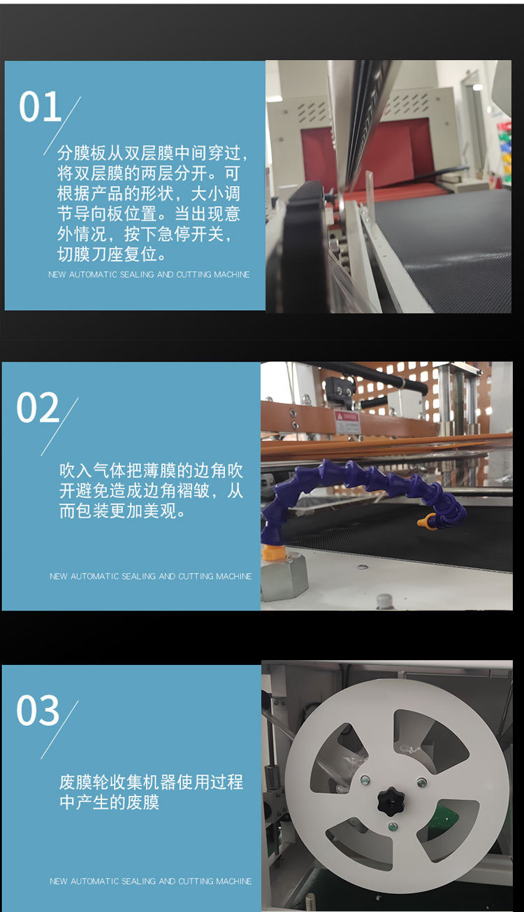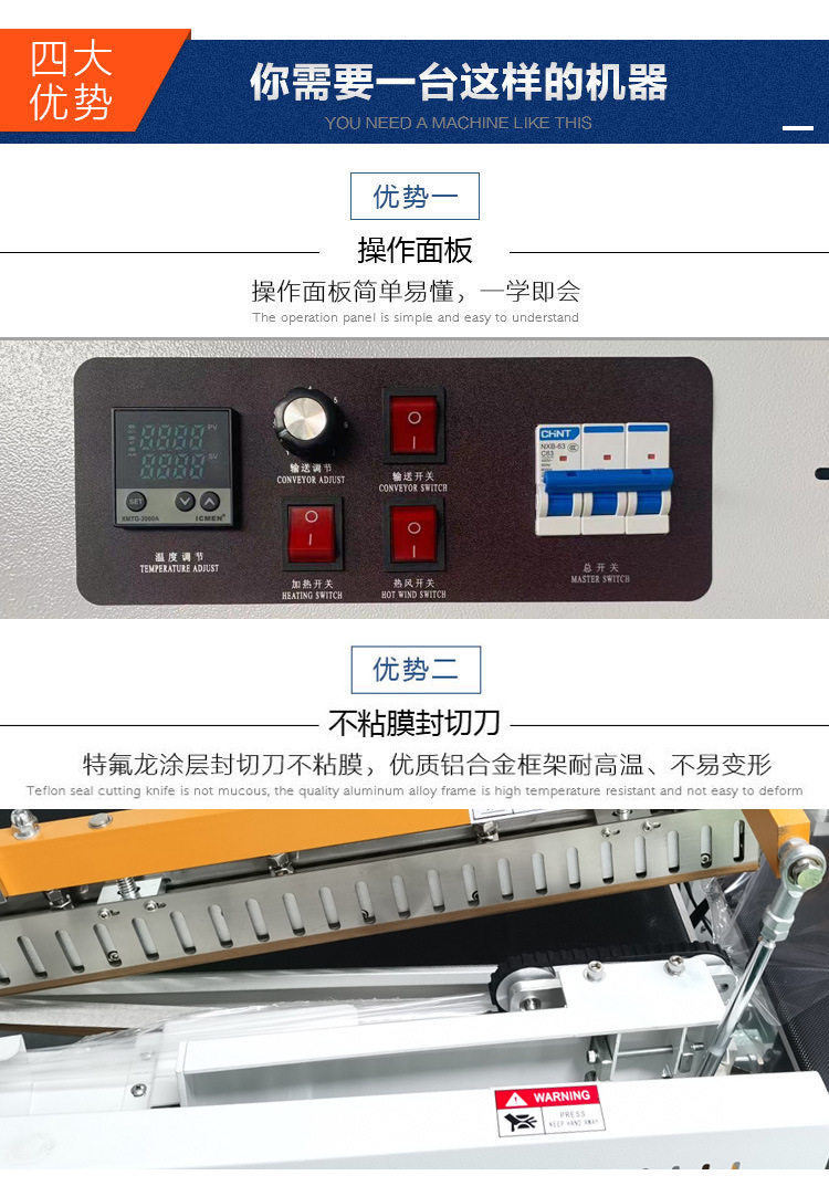 全自動封切收縮機是新型的全自動無人化操作的機型,只需將產品放在進料輸送帶上,通過光電感應,自動完成輸送-封口-輸送全過程,收縮爐采用不銹鋼加熱器,大功率電機運風。產品介紹 本機也可與工廠生產線連接。實現無人化生產,適用于軟件、餅干、印刷、制藥等行業