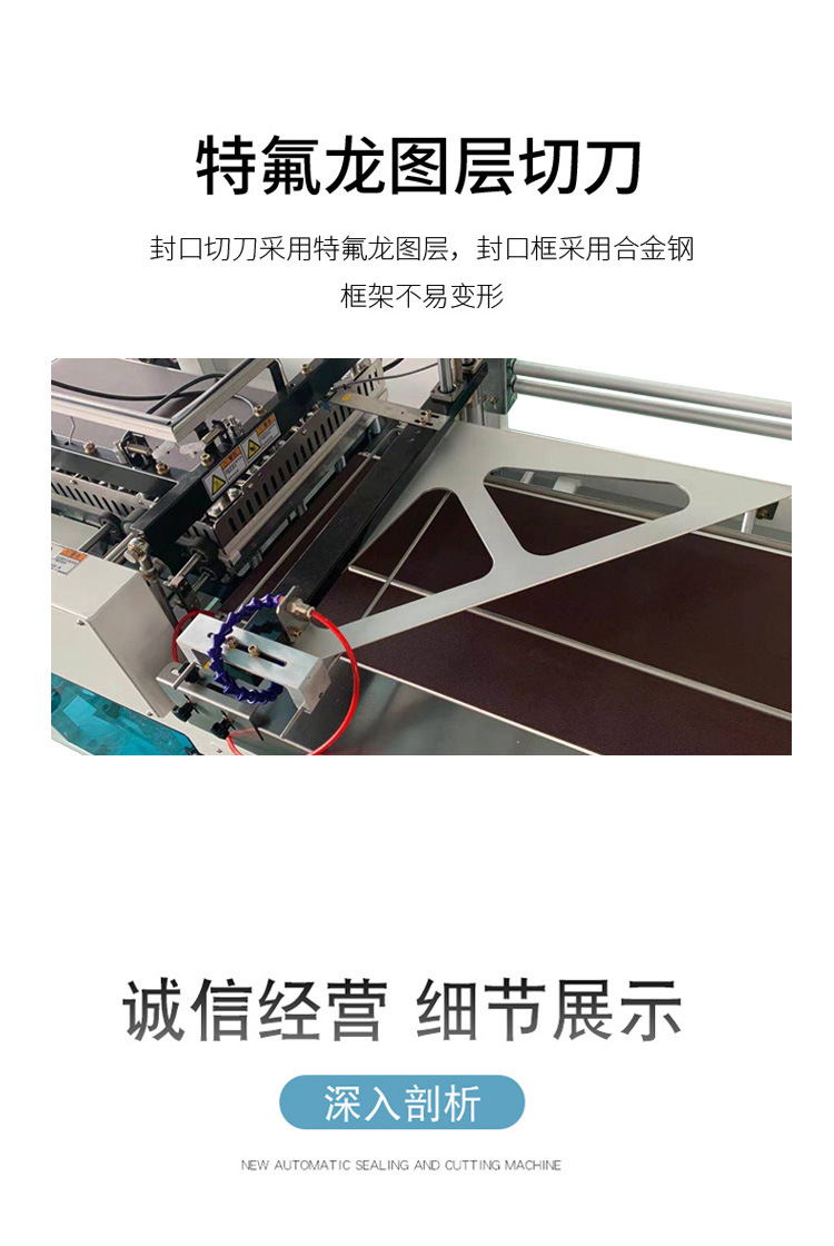 全自動封切機采用優質不銹鋼材料制成,結構牢固、美觀大方,耐用性極高。其獨特的自動跟蹤系統能夠確保包裝袋尺寸的準確性,提高包裝效率和產品質量。封切機配備高效真空泵,可實現封口迅速、粘合牢固,有效防止包裝袋密封不嚴、空氣進入等問題,確保產品在運輸、儲存過程中的品質。